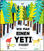 »Hast du gewusst, dass bei mir im Wald hinterm Haus ein Yeti lebt?«, fragt der kleine Bub und lädt das Lesepublikum damit ein, ihm und seinem Hund Milo auf eine gut geplante Expedition in den verschneiten Wald zu folgen. Die winterliche Welt, mit Pastellkreiden märchenhaft zu Papier gebracht, entpuppt sich schnell als Suchbild, denn während der Bub noch erfolglos die Augen offenhält, können die aufmerksamen Lesenden bereits schemenhafte Formen im Hintergrund oder verdächtig große Füße unter den Bäumen entdecken. Dieser Entdeckungsehrgeiz wird vom Buben in der Geschichte mit vollstem Engagement vertreten: So spielen sowohl genaue wissenschaftliche Recherche, eine elaborierte Ausrüstung für die Yeti-Jagd als auch der Wunsch nach öffentlicher Anerkennung der erhofften Entdeckung eine bedeutende Rolle für ihn. Umso größer ist dann die Enttäuschung, als sich trotz genauester Nachforschungen noch immer kein Yeti sehen lässt; die von Weiß und Hellblau geprägten Seiten werden unterbrochen von einer tiefschwarzen Seite der Verzweiflung, auf der der ehrgeizige Forscher überraschend wortreich seinem Frust freien Lauf lässt. Dann vergisst der Bub auch noch seinen Lieblingsschal im Wald, doch wieder in vollstem Vertrauen auf das Auftauchen von Verschwundenem meint er mit denselben Worten, mit denen er auch seine Suche nach dem Yeti begründet hat: »Irgendwo muss er ja schließlich sein«.